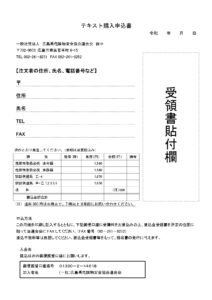 申込書を印字しテキスト代金を入金後、振込証明書を所定の位置に貼付してください。